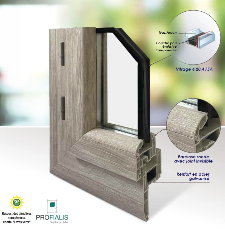 Notre gamme PVC est personnalisable à souhait. Avec un grand choix de parcloses, ainsi que ces dormants et ouvrants galbés qui donnent une nouvelle harmonie à votre habitat (formes et couleurs variées). Les fenêtres sont optimisées pour répondre au crédit d’impôt et autres aides de l’État (Voir conditions d’éligibilité). De plus, nos fenêtres répondent aux attentes des exigences thermiques.